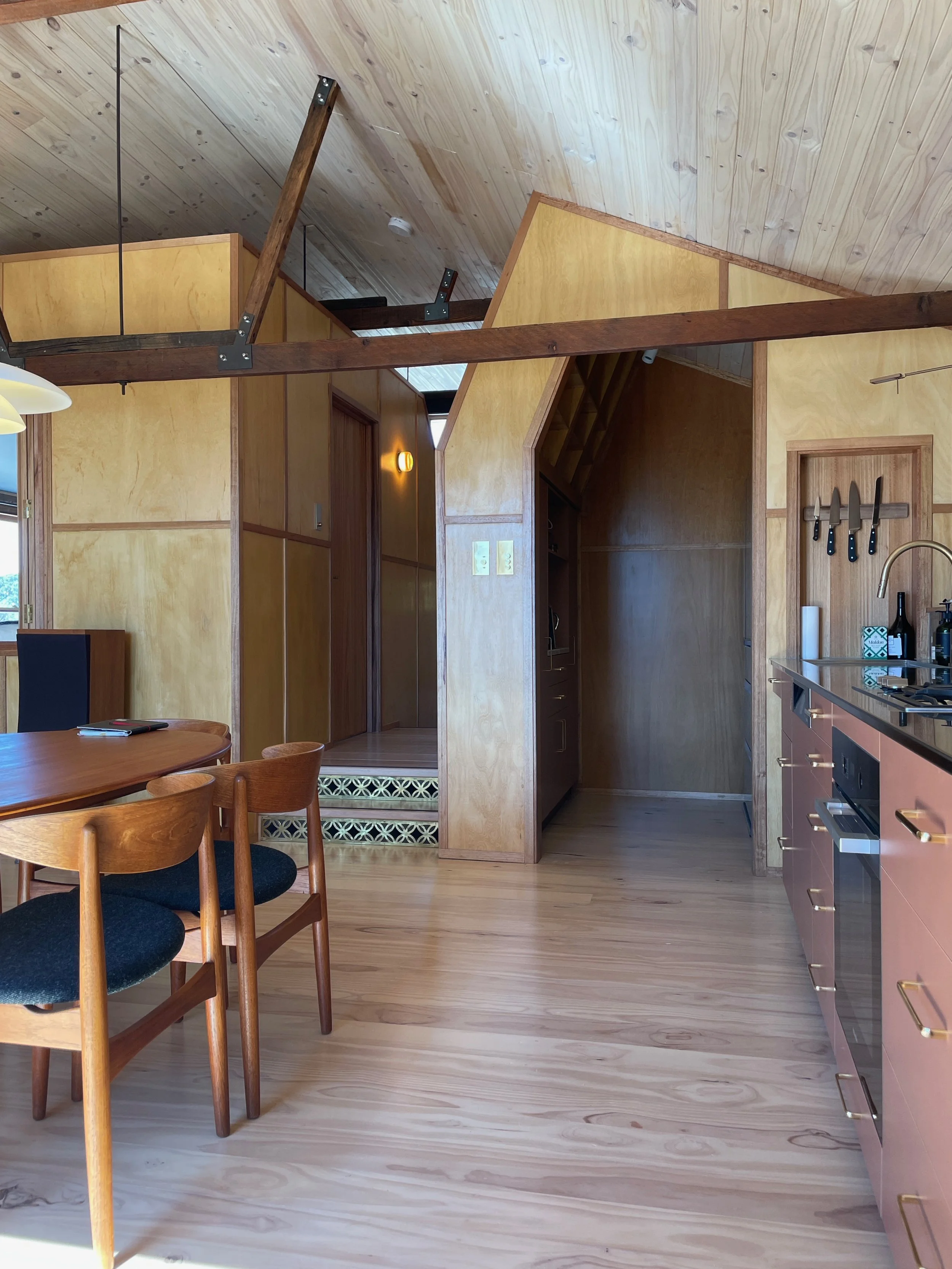 Existing openings were retained and the project designed around them, with a single new opening required. A pair of faceted capsules were inserted and an existing verandah partially infilled. External detailing is particularly robust in response to nearby buildings, and the toughness of the environment.